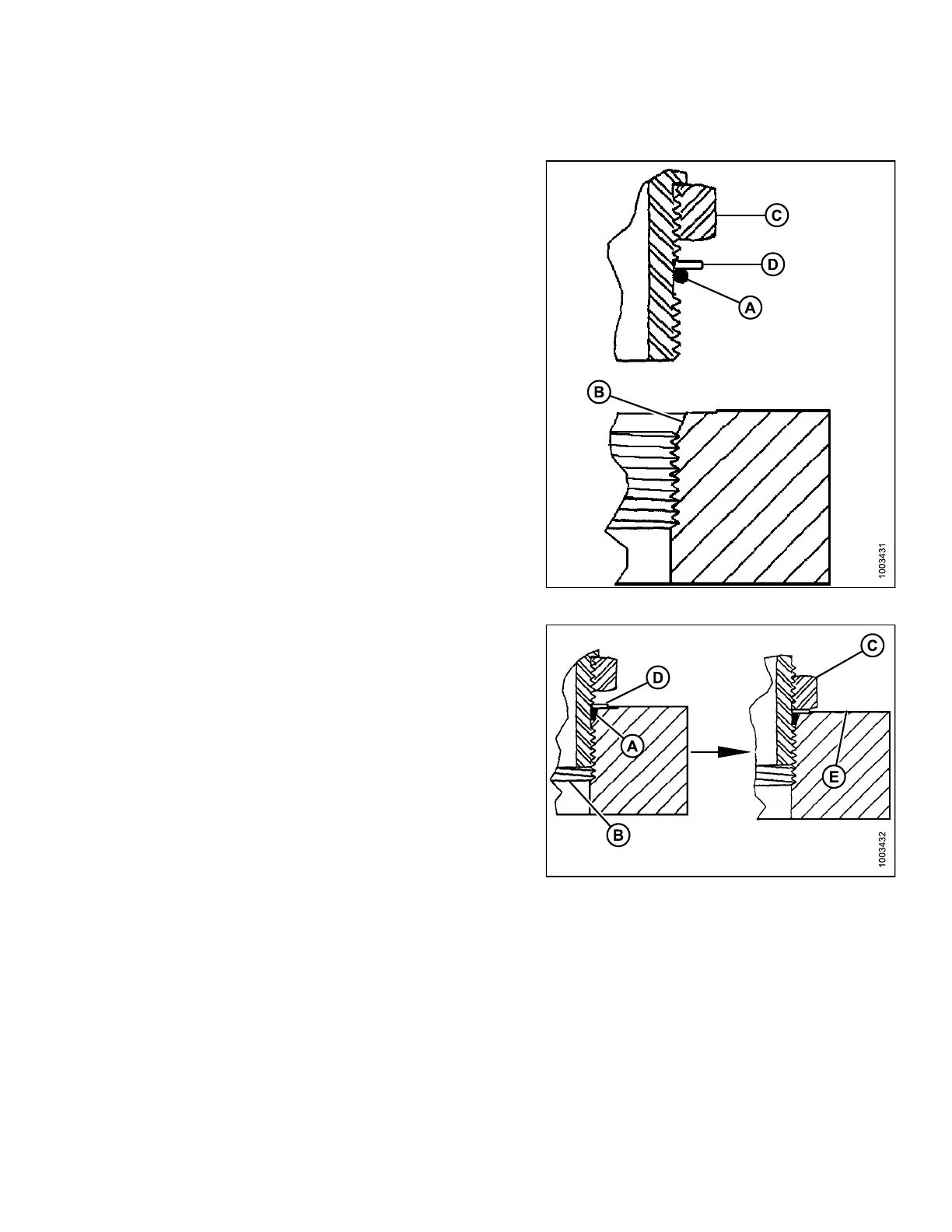 5. Install fitting (B) into port until back up washer (D) and