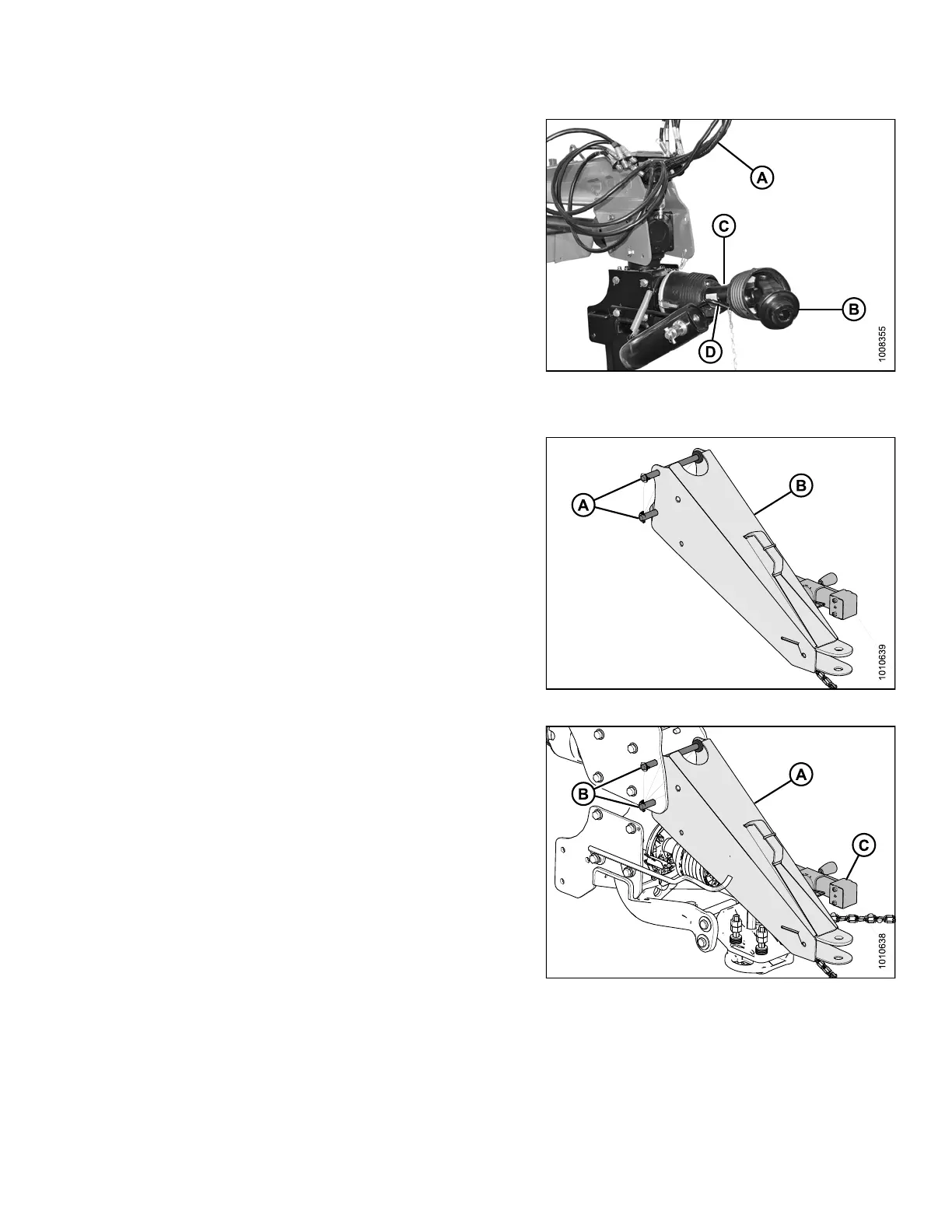 line (C) on hook (D) (if power take-off (PTO)