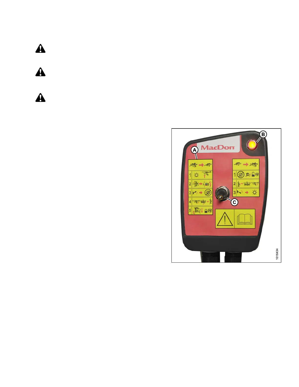 Stop the power take-off (PTO) before converting the unit into transport mode. The cutting discs continue