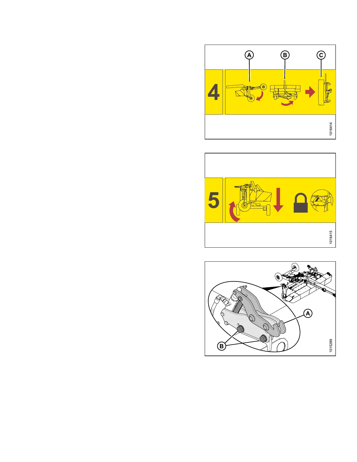 wheels (A) and hold lever until mower conditioner is