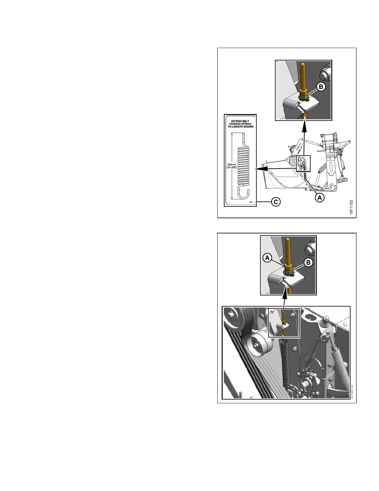 adjuster nut (B) to adjust spring length to 14-3/8 in.