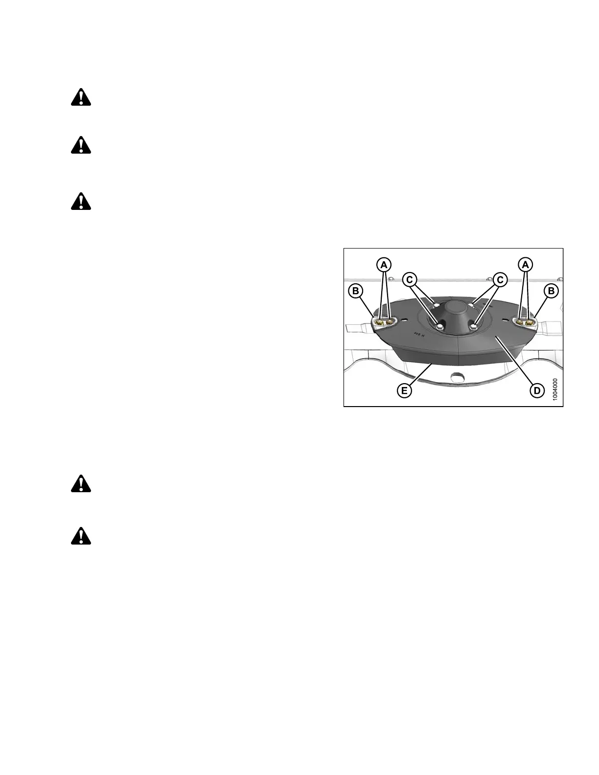 4. Inspect the cutterbar disc edges (E) for cracks,