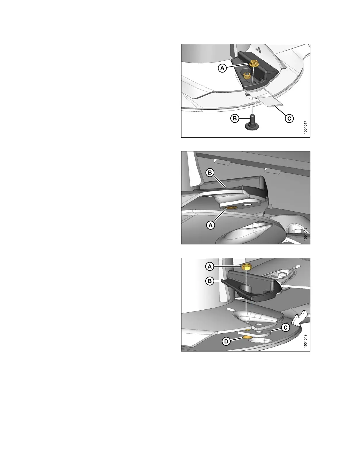 4. Use a hex wrench on bolt (D).