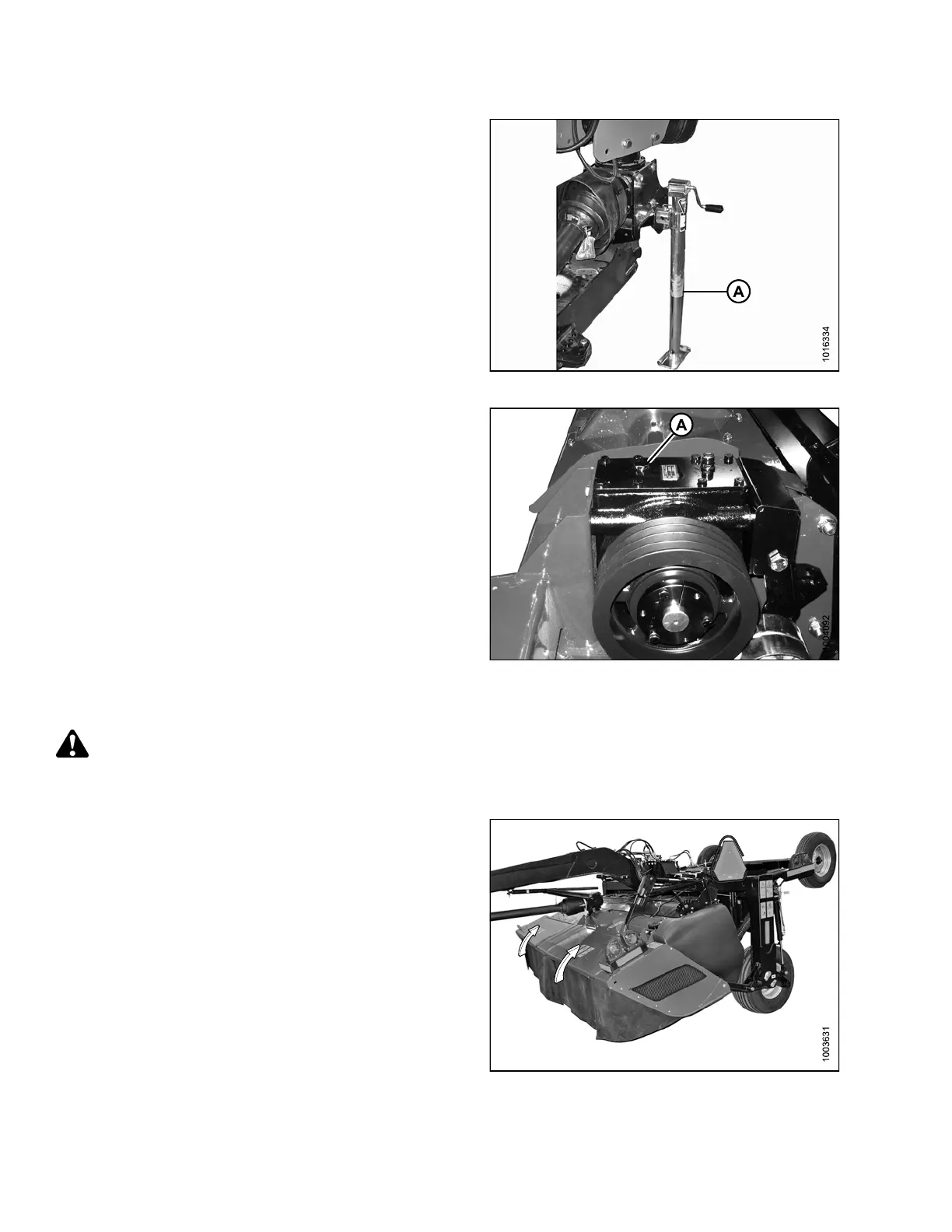 5. Adjust the hitch jac k (A) until the drive gearbox is