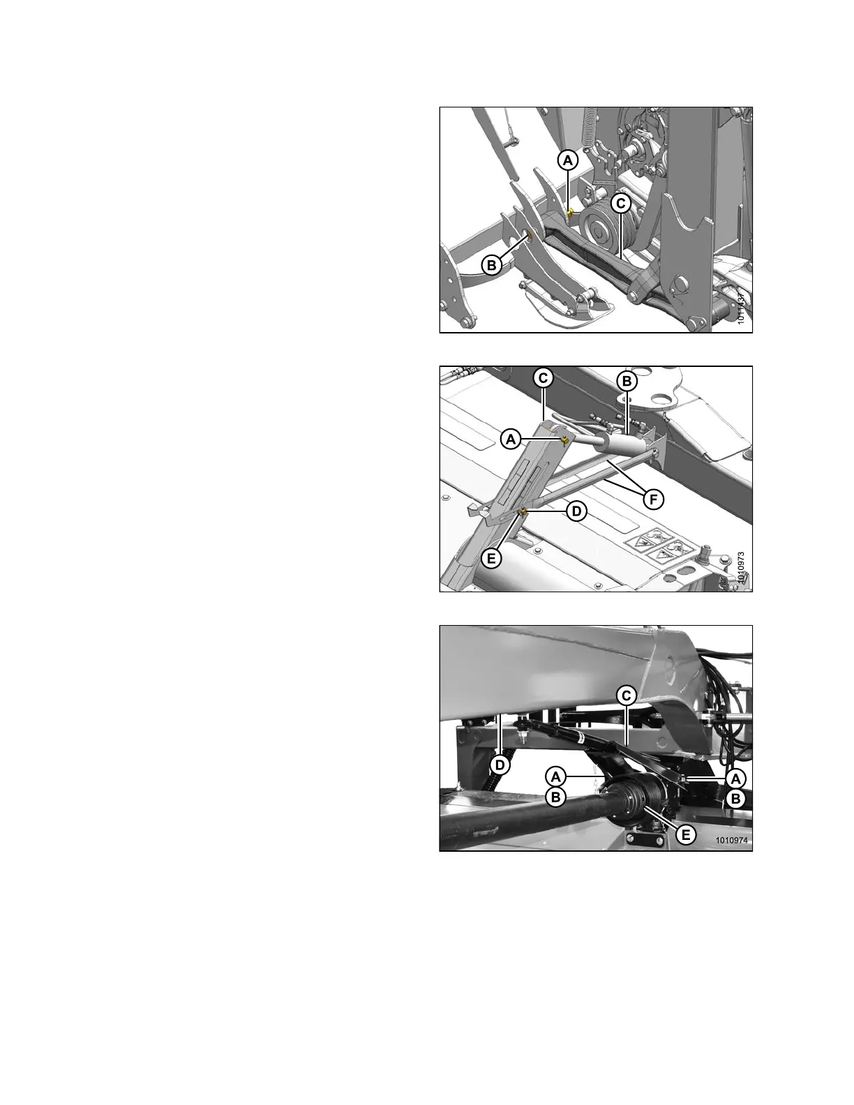 23. Disconnect aft driveline (E) from header drive gearbox.