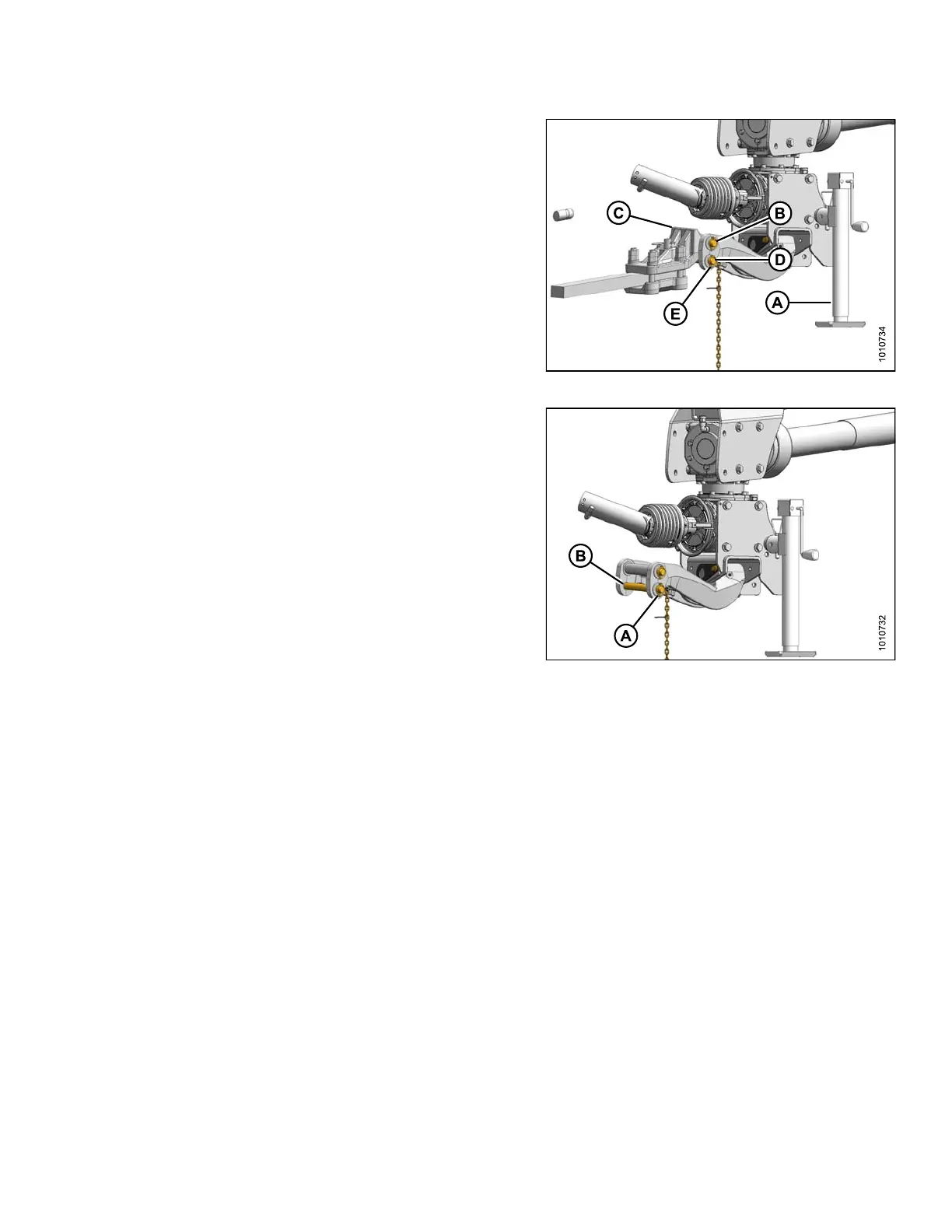13. Remove lynch pin (E), and remove clevis pin (D).
