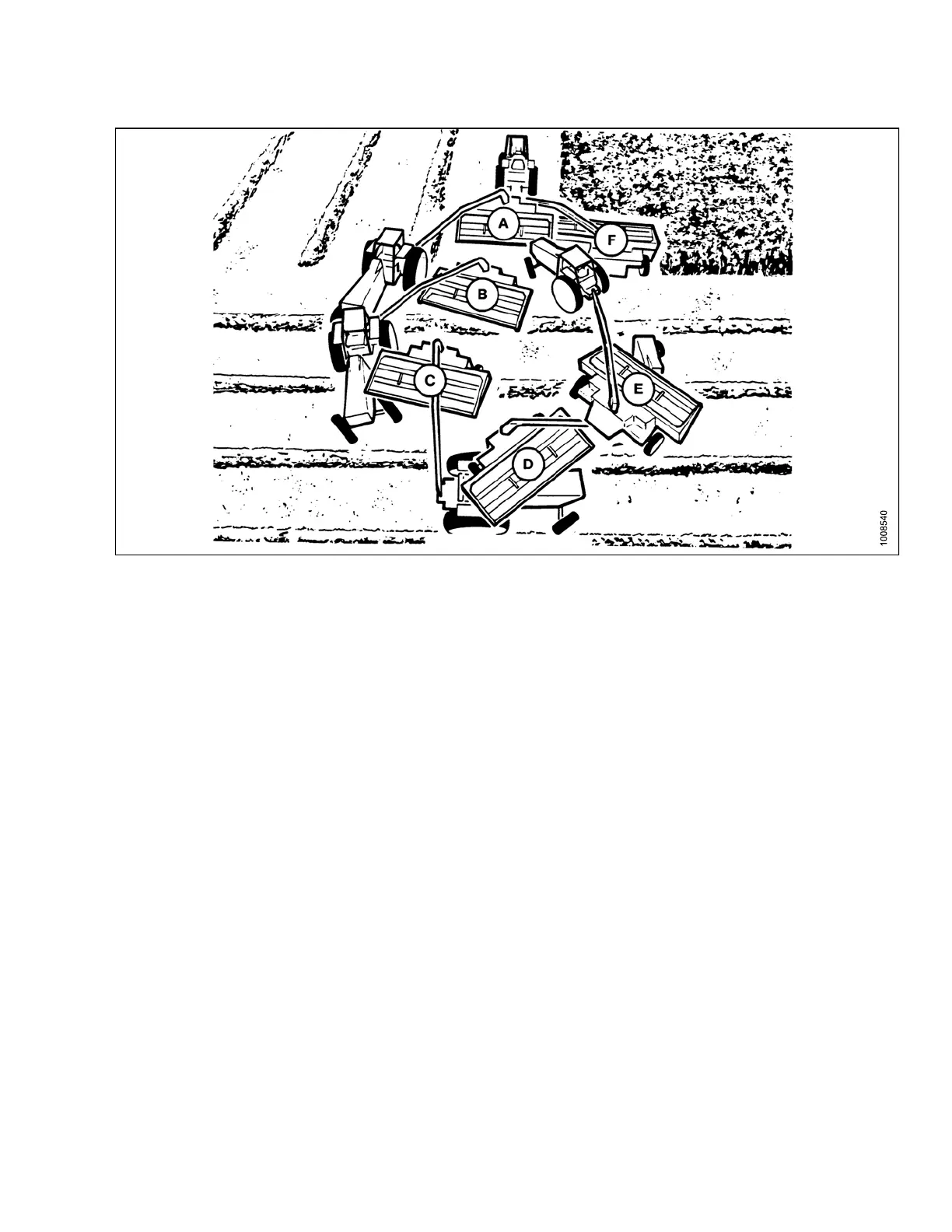 mplete the tractor turn as shown in position (E), and position the tra ctor so it is straddling the last cut windrow.