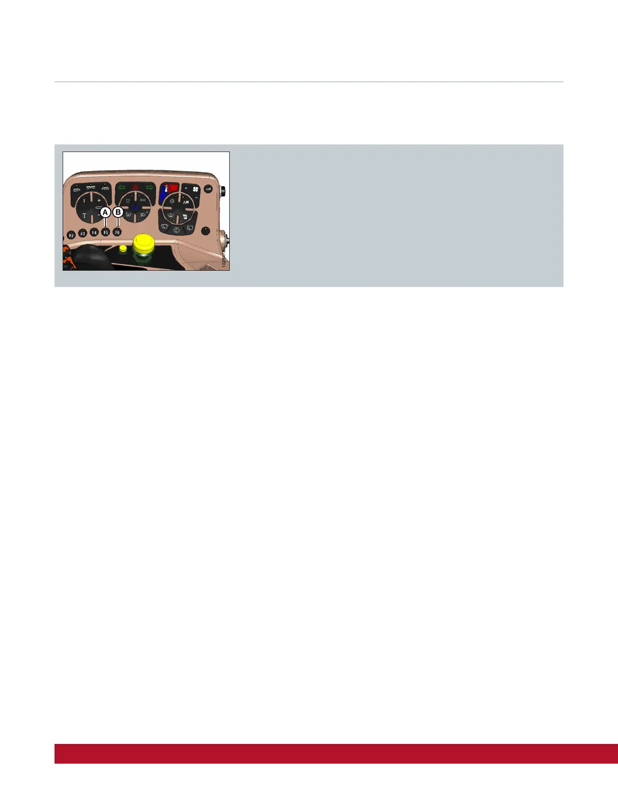 windrower cab by buttons F5 (A) (bae up) and F6 (B) (bae down).