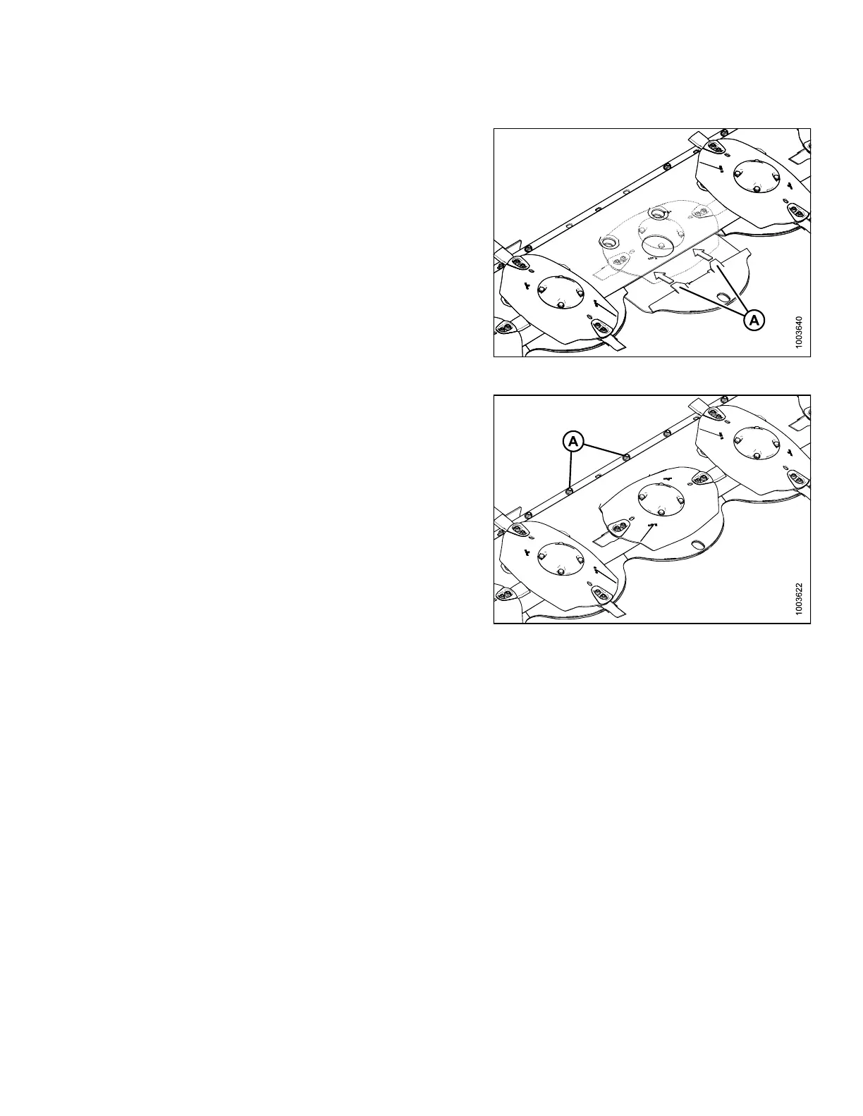 1. Guide rock guard onto cutterbar until tabs (A) sit on top of