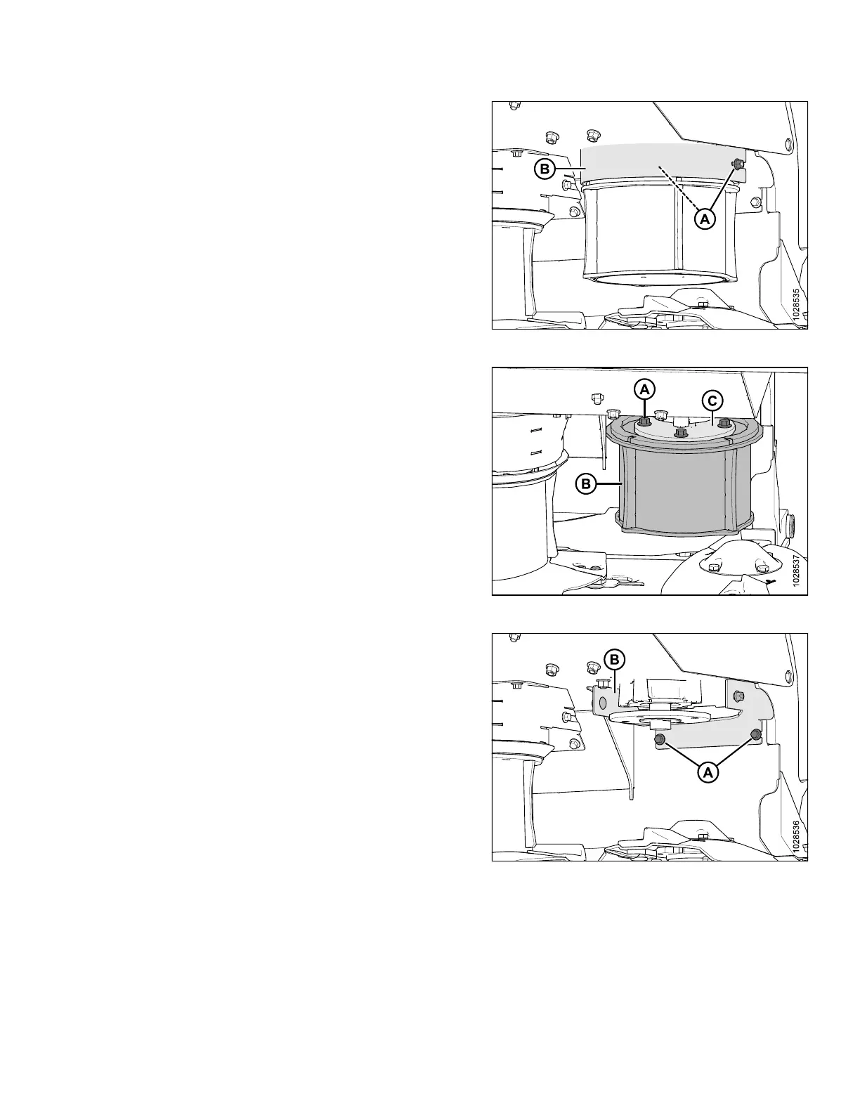 6. Remove four M12 hex flange head bolts (A) securing