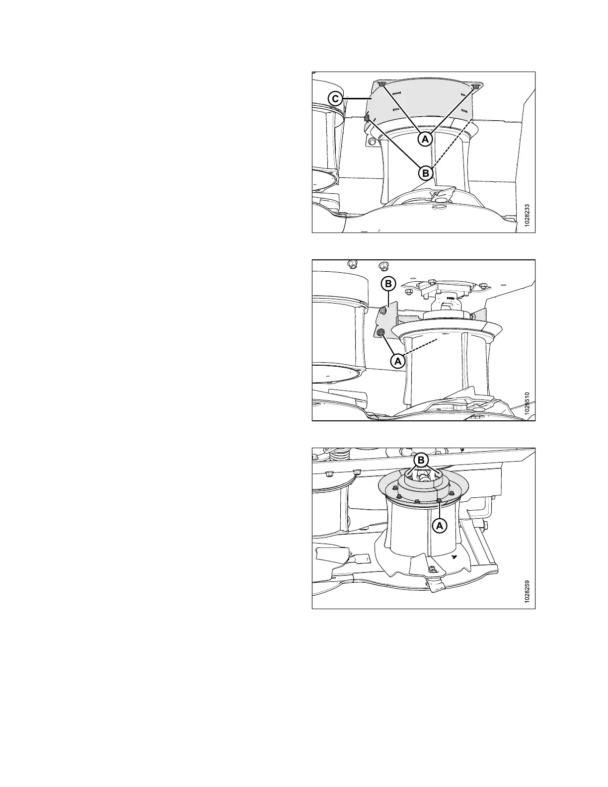 M10 hex flange head bolts (B). Pull back driveshield (C).