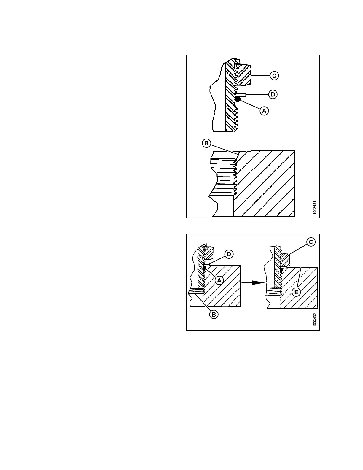 5. Install fitting (B) into port until backup washer (D) and