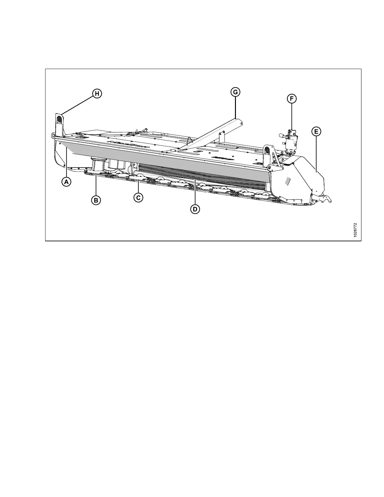 D - Conditioner Rolls E - Drive Shield (Left) F - Hydraulic Motor