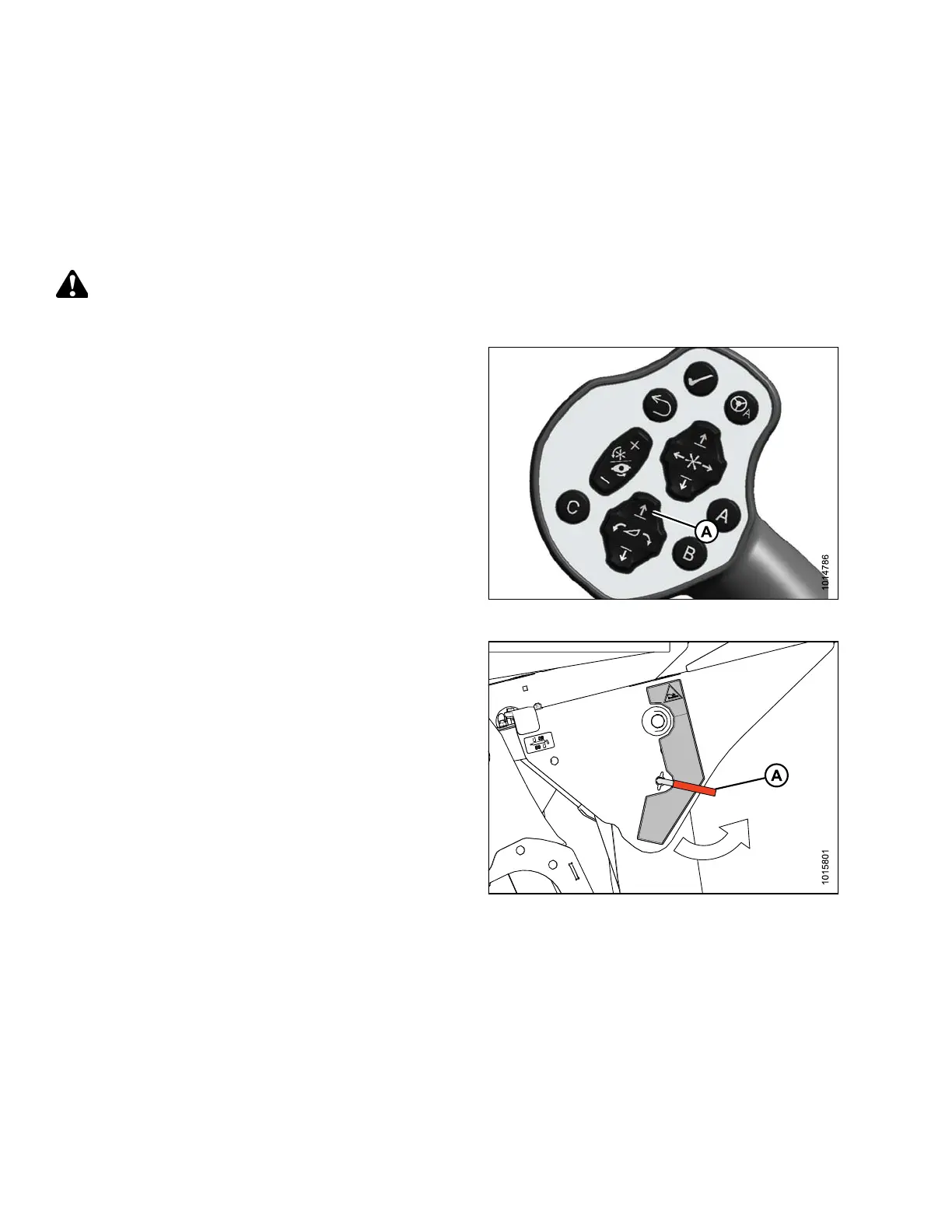 1. Start the engine. Press the HEADER UP (A) switch to raise