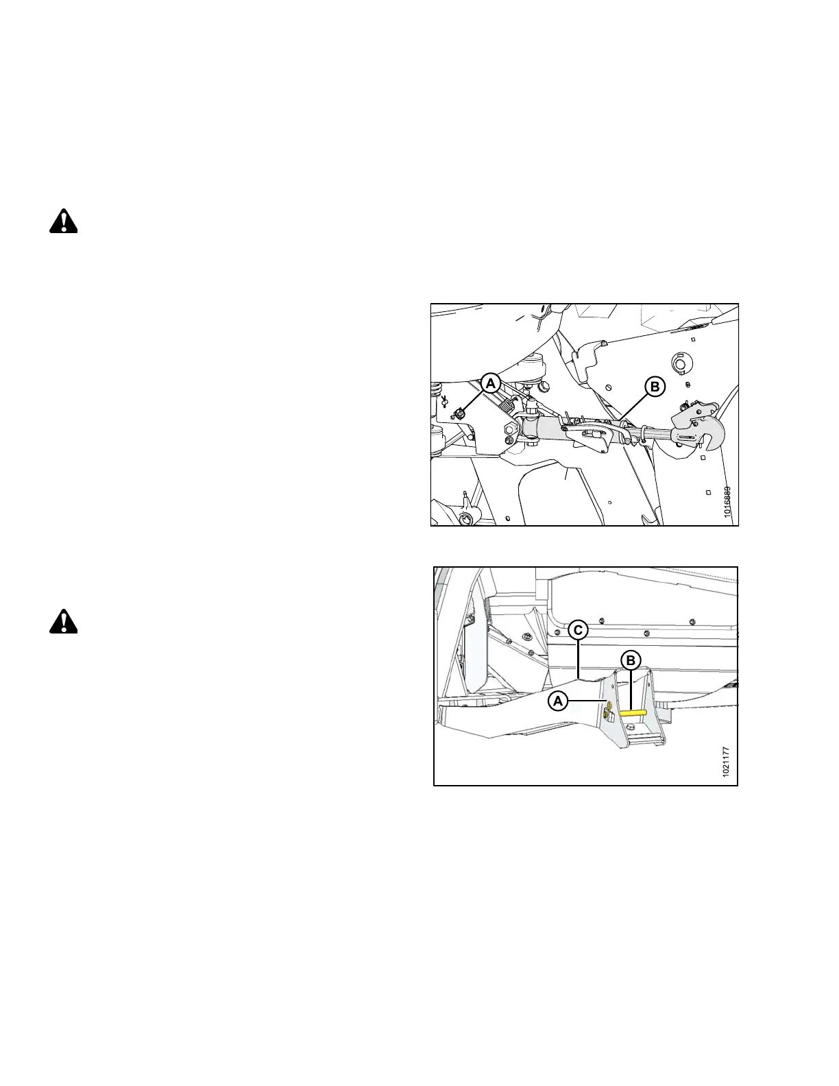 pin (A) and raise center-link (B) until hook is above the