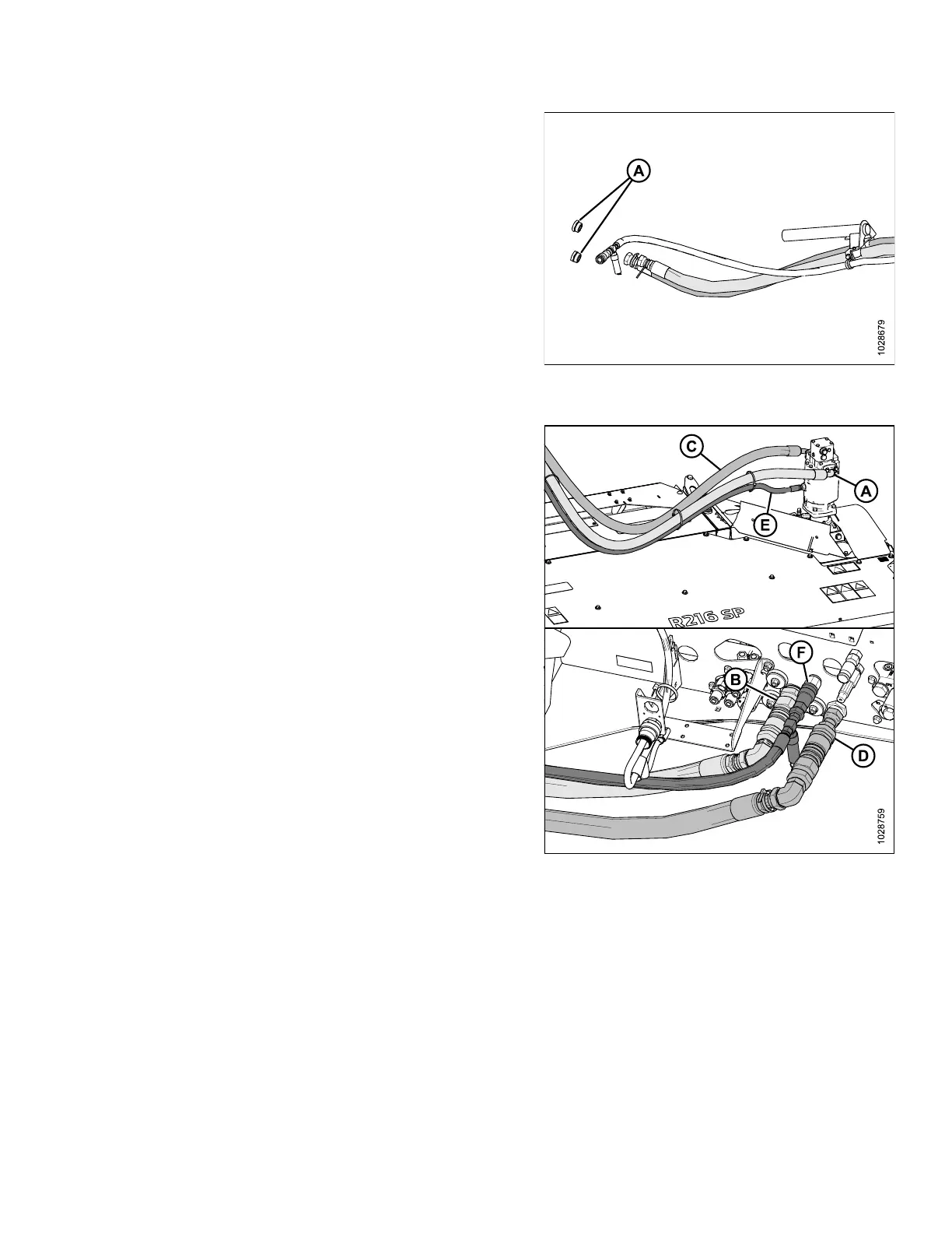 b. Connect disc return hose (C) with coupler (D) and