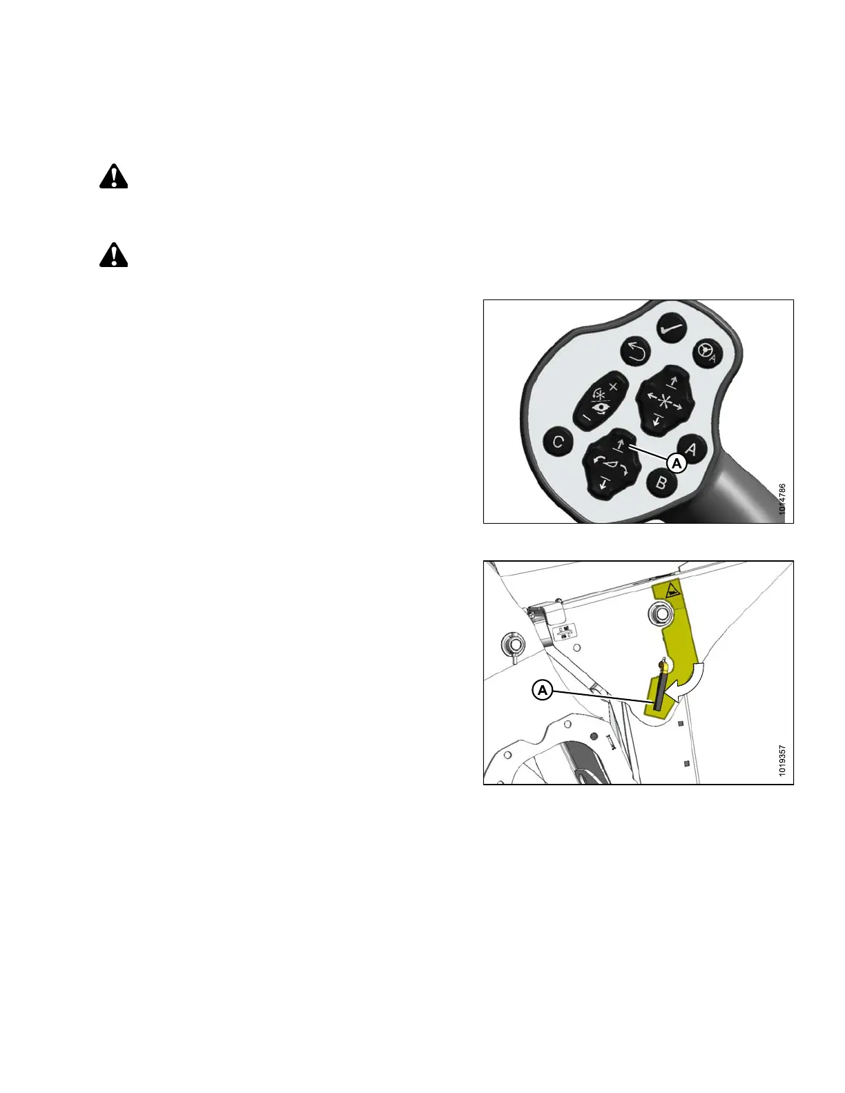 1. Start the engine, and press switch (A) to raise the header to