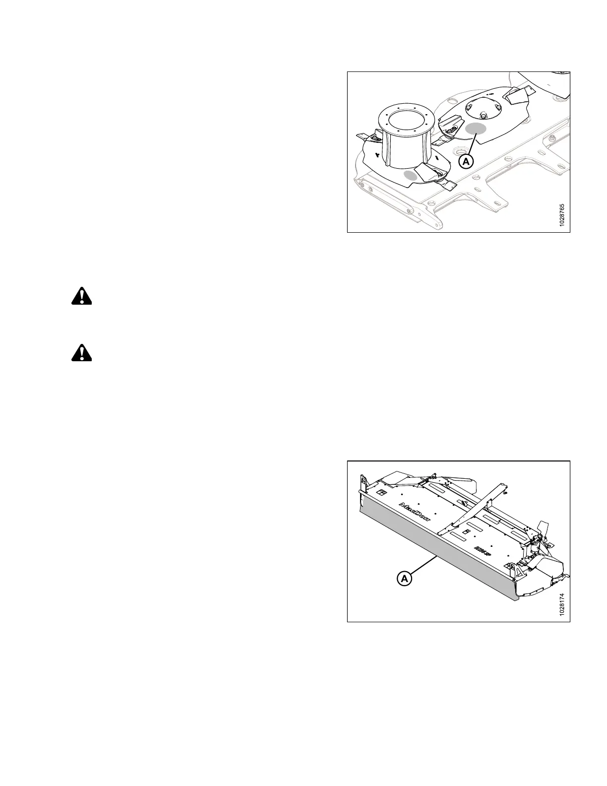6. Inspect the cutterbar disc for abrasion (A). The wear limit