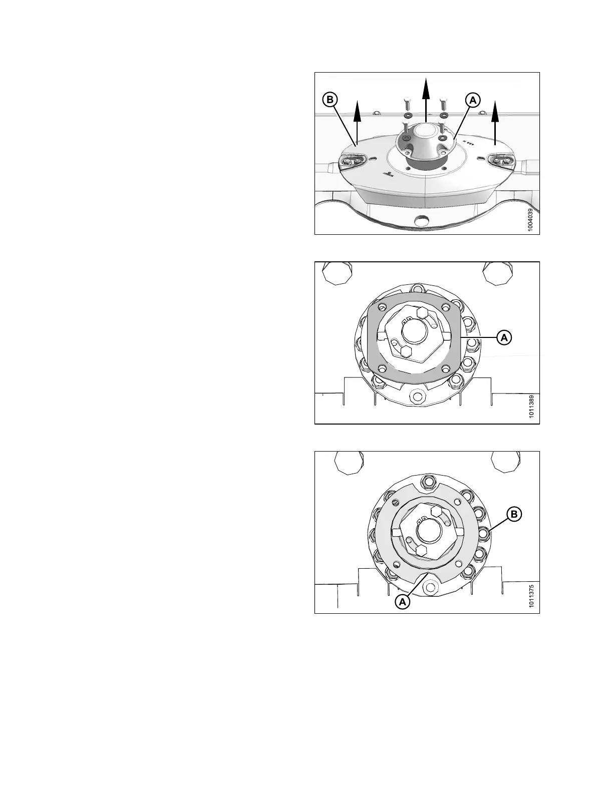 11. Rotate spindle hub (A) to access nuts, and remove eleven