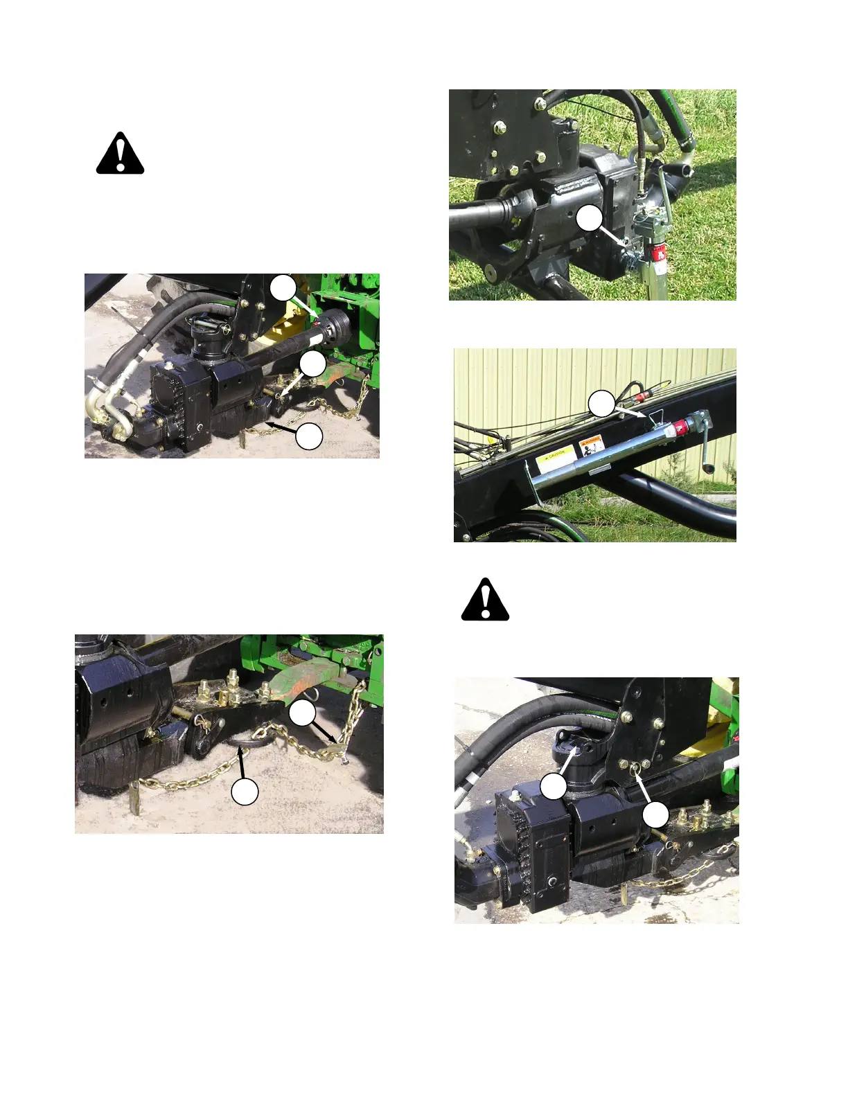 b. Back up tractor to hitch and align hitch