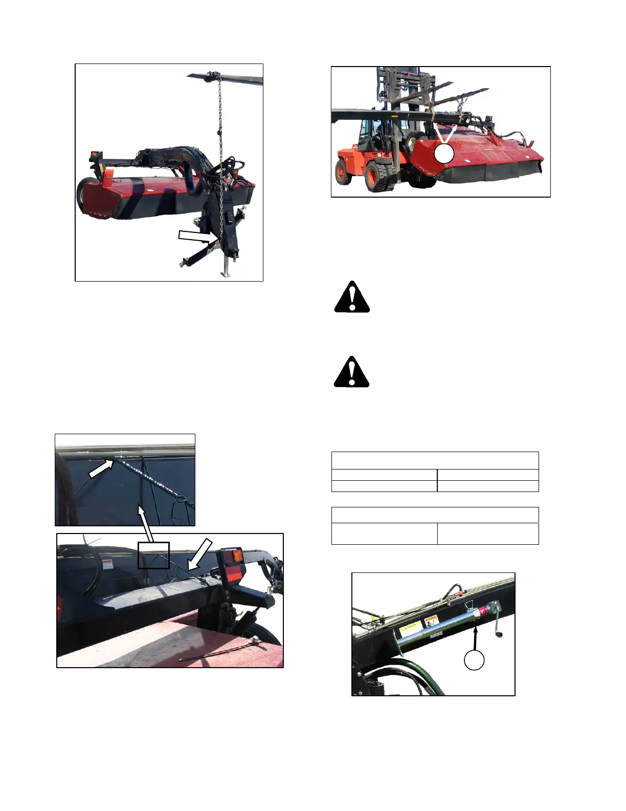 j. Lift mower conditioner slightly to take weight off