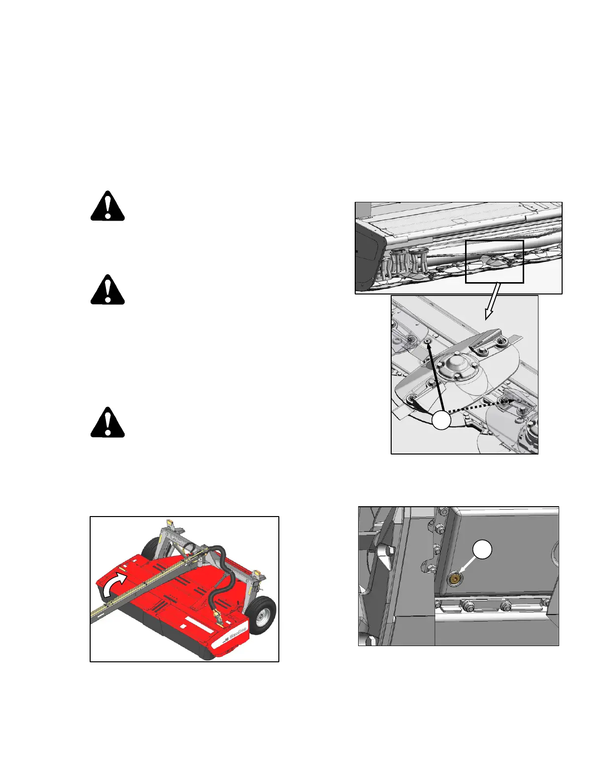 d. To gain access to the cutterbar drain plug, the