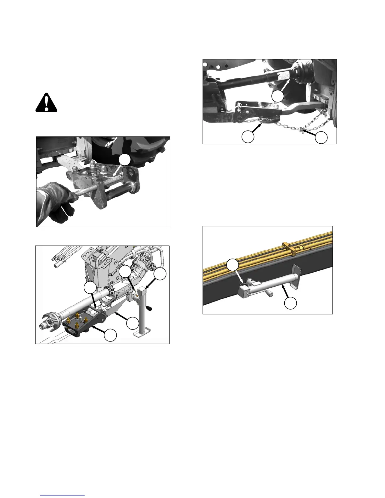 e. Attach driveline (E) to tractor PTO shaft as