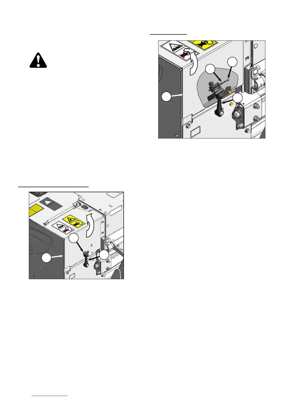 b. To close drive shield, lower shield (B) so that