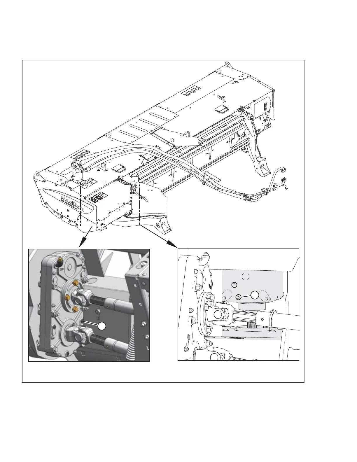 A - Conditioner Gearbox Oil Level (Check with Top of Header Horizontal) B - Bevel Gearbox Oil Level (Check with Top of Header Horizontal)