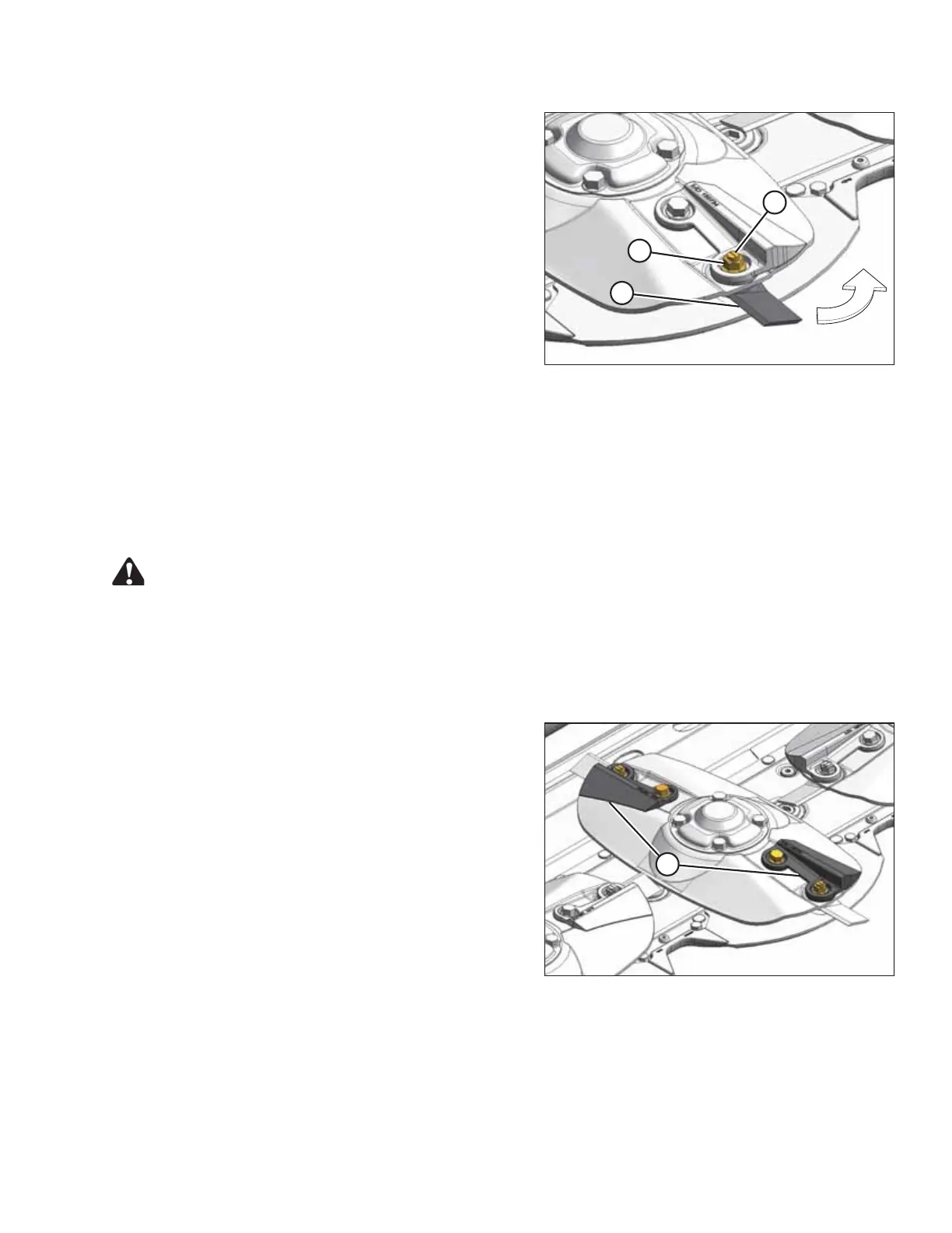 10. Install new or reversed blade (C) with shoulder bolt (B)