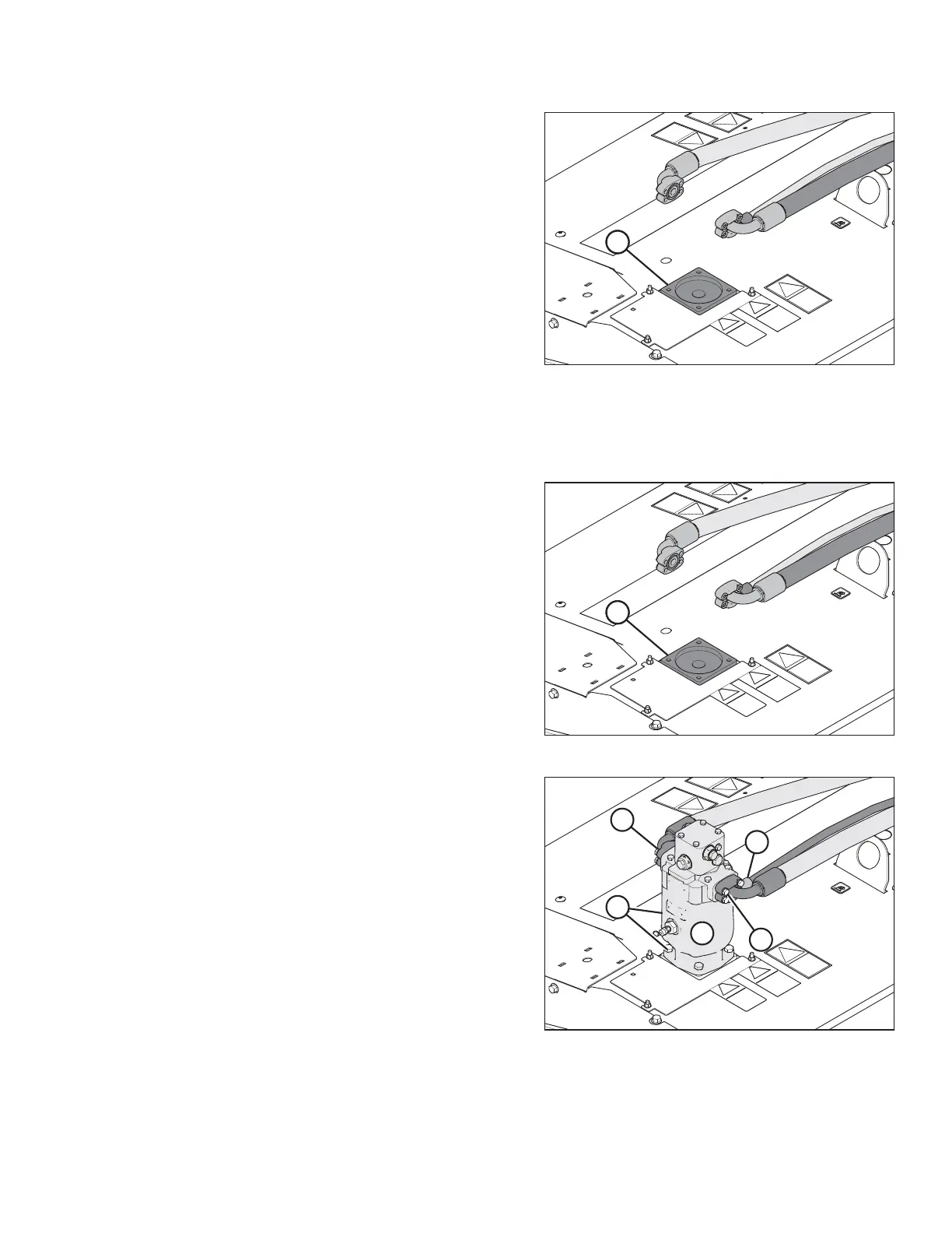 7. Connect hoses (C) to motor (B) with split flanges (E)
