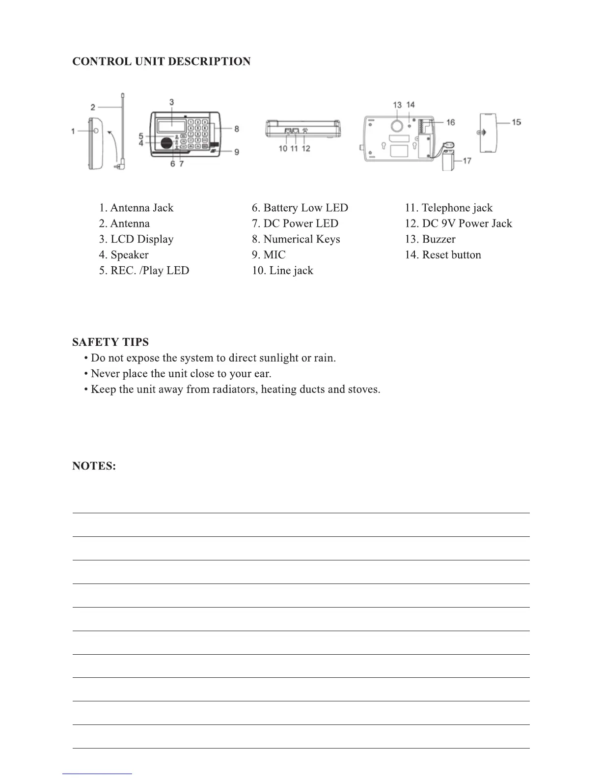 Mace 80355 - Control Unit Description and Safety; Safety Tips