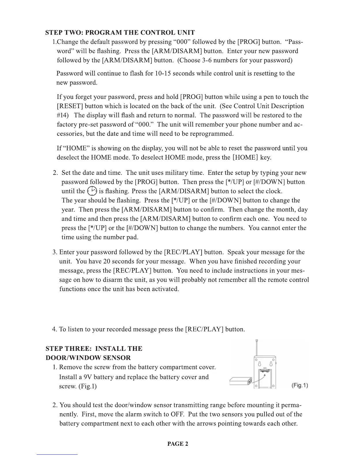 Mace 80355 - Program the Control Unit; Install the Door;Window Sensor