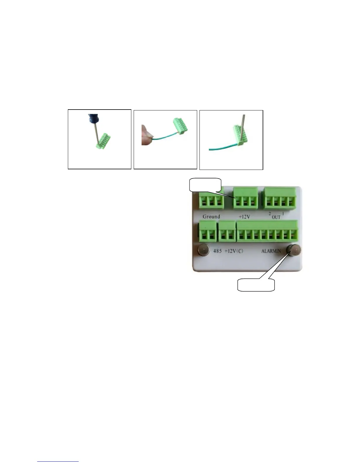 b)“+12v”: provide the power to alarm device