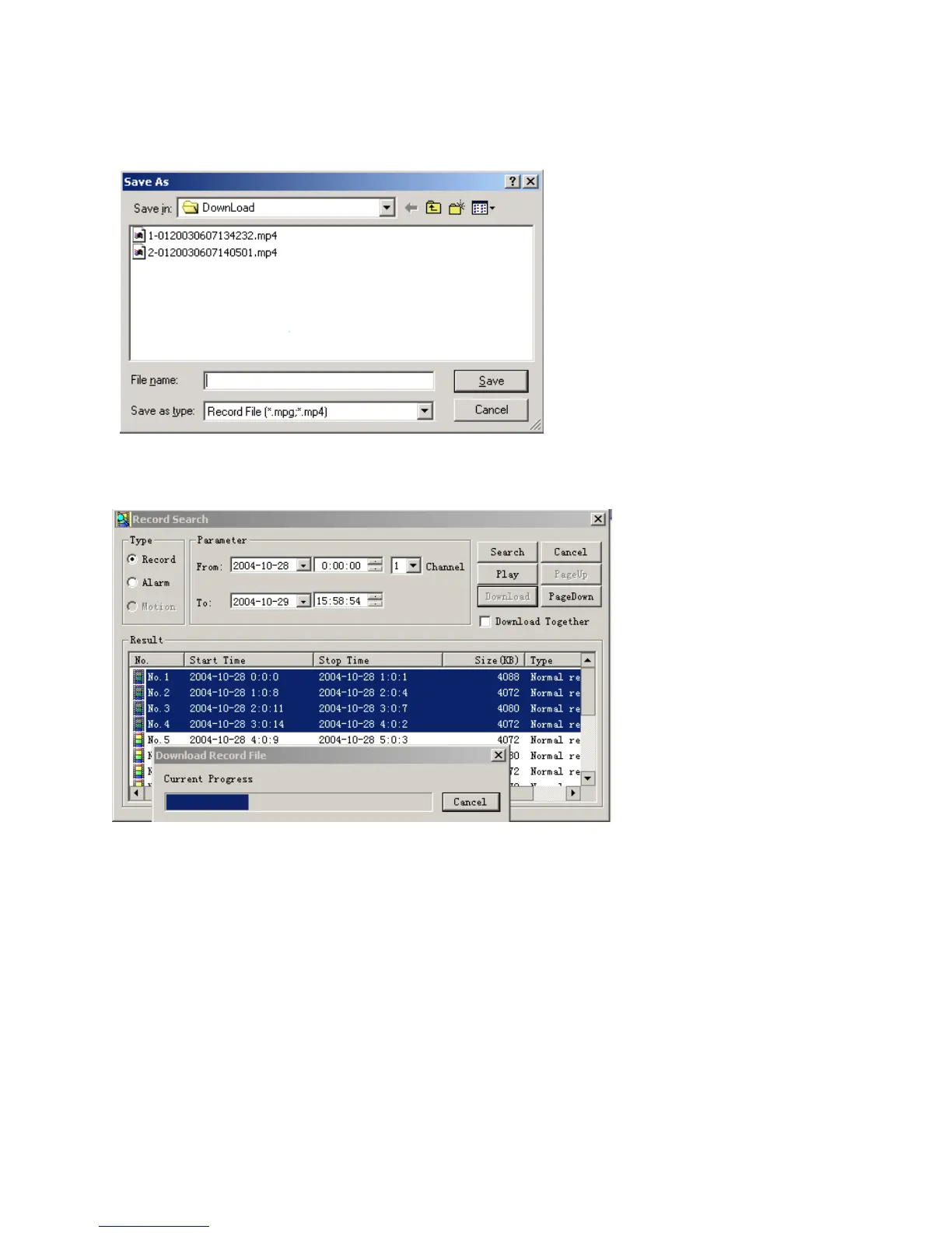 names is as: file name +Channel N +date +time, extension name is .mp4(Example: a-0120021205071028.mp4, 01