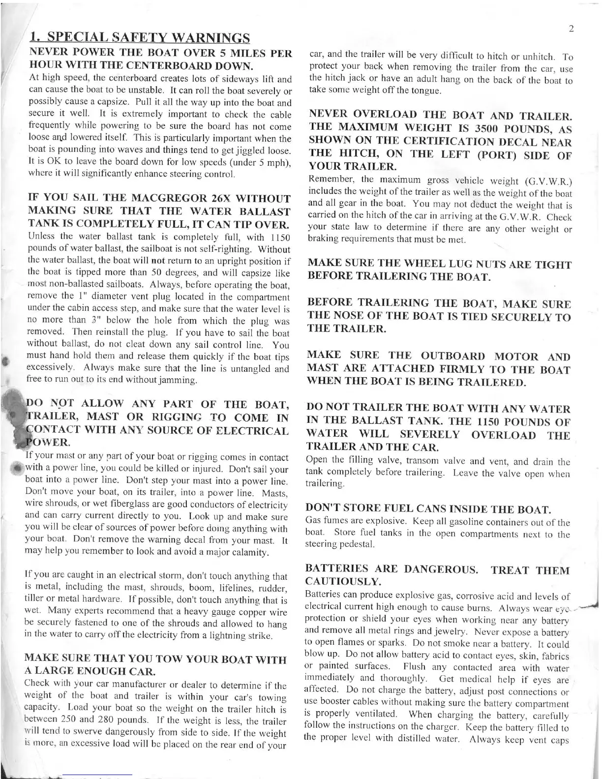 MACGREGOR 26X - Special Safety Warnings