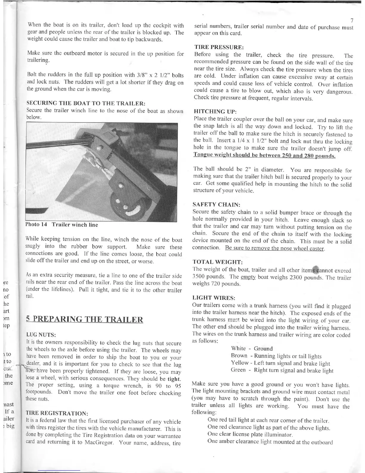 MACGREGOR 26X - Preparing the Trailer; Securing the Boat to the Trailer; Tire Pressure; Hitching up
