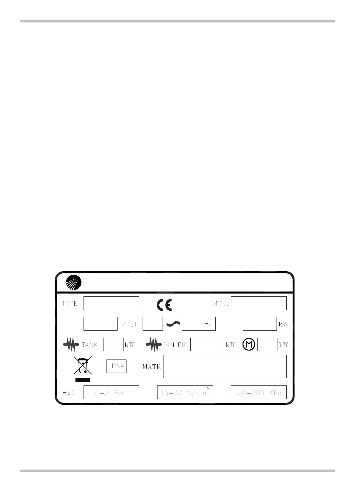 La targhetta caratteristiche (Fig. 1-1) si trova sul fianco dx della macchina. Essa contiene tutti i dati necessari per