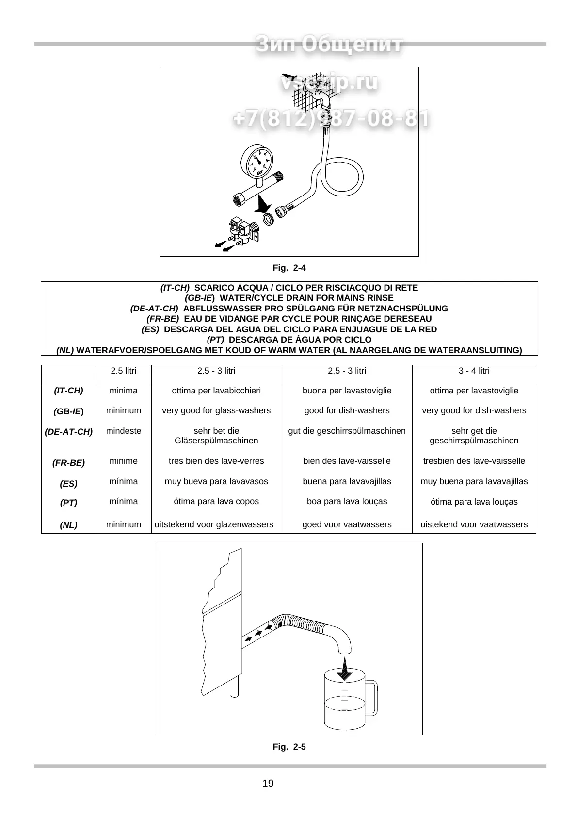 (GB-IE) WATER/CYCLE DRAIN FOR MAINS RINSE