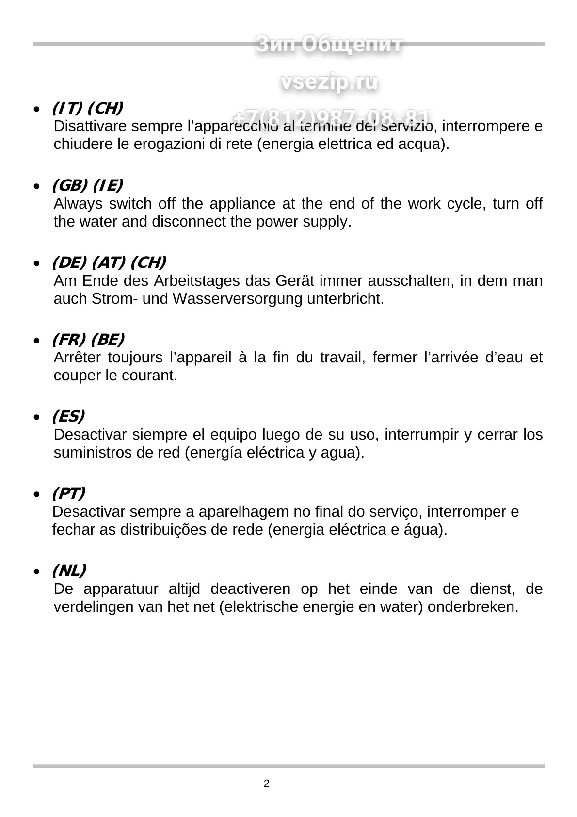Always switch off the appliance at the end of the work cycle, turn off