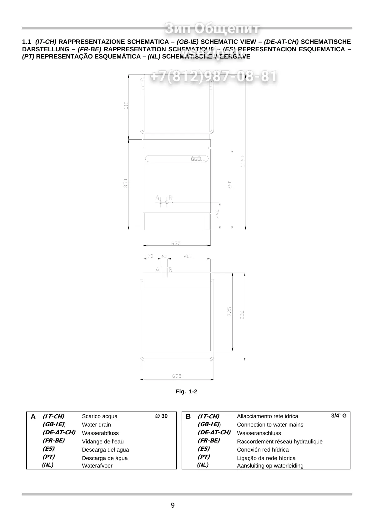 1.1 (IT-CH) RAPPRESENTAZIONE SCHEMATICA – (GB-IE) SCHEMATIC VIEW – (DE-AT-CH) SCHEMATISCHE