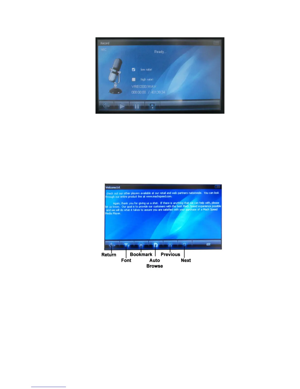 bookmark function. Touching the Return icon will return you to the Media Library.