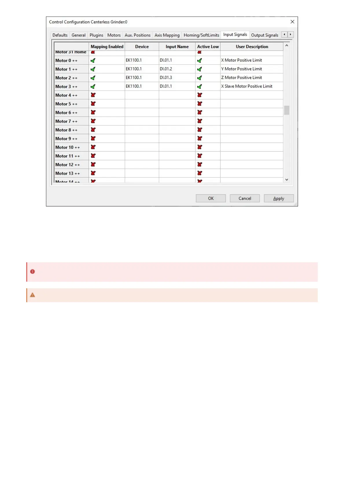 signal does not need to be configured. The home signal for a motor is called Motor # Home, where # is the motor