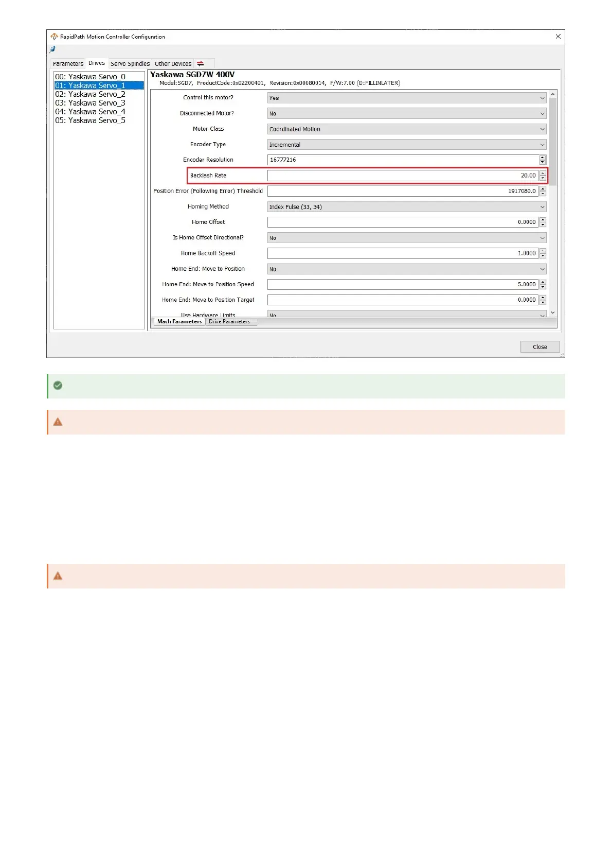 At this point, axes should have correct motion with accurate units and reasonable speeds and accelerations.
