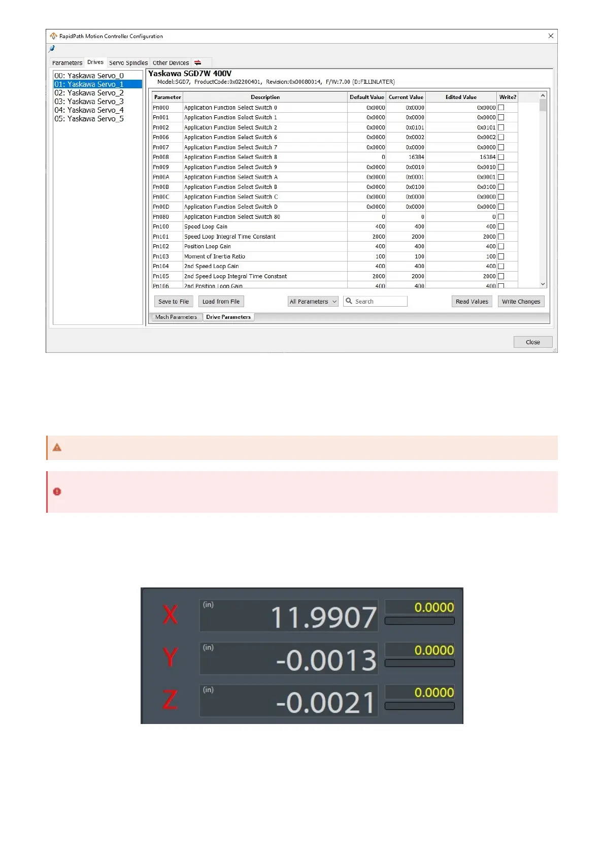 flash red and yellow. If an axis is homed, the letter will turn black. All motors on an axis must succeed at homing for an