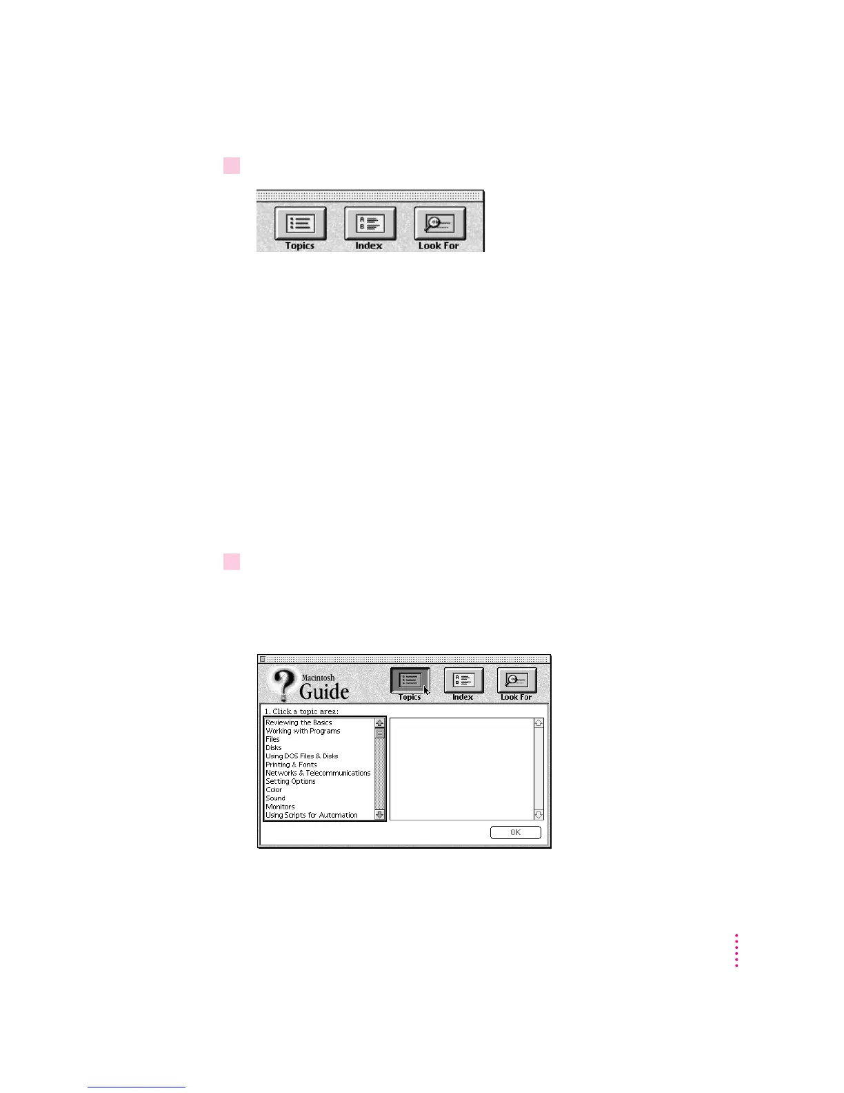 3Notice the three buttons at the top of the window: Topics, Index, and Look For.