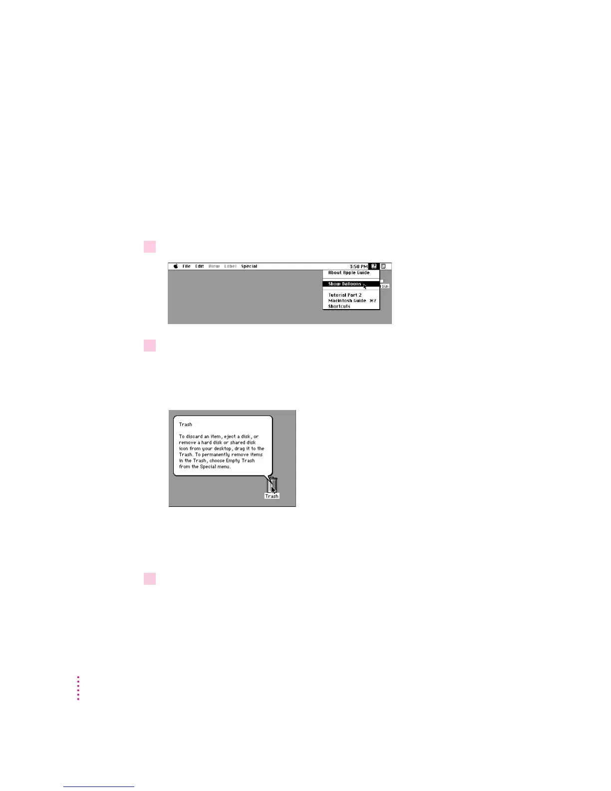 items on the Macintosh screen in balloons like those you see in comic strips.