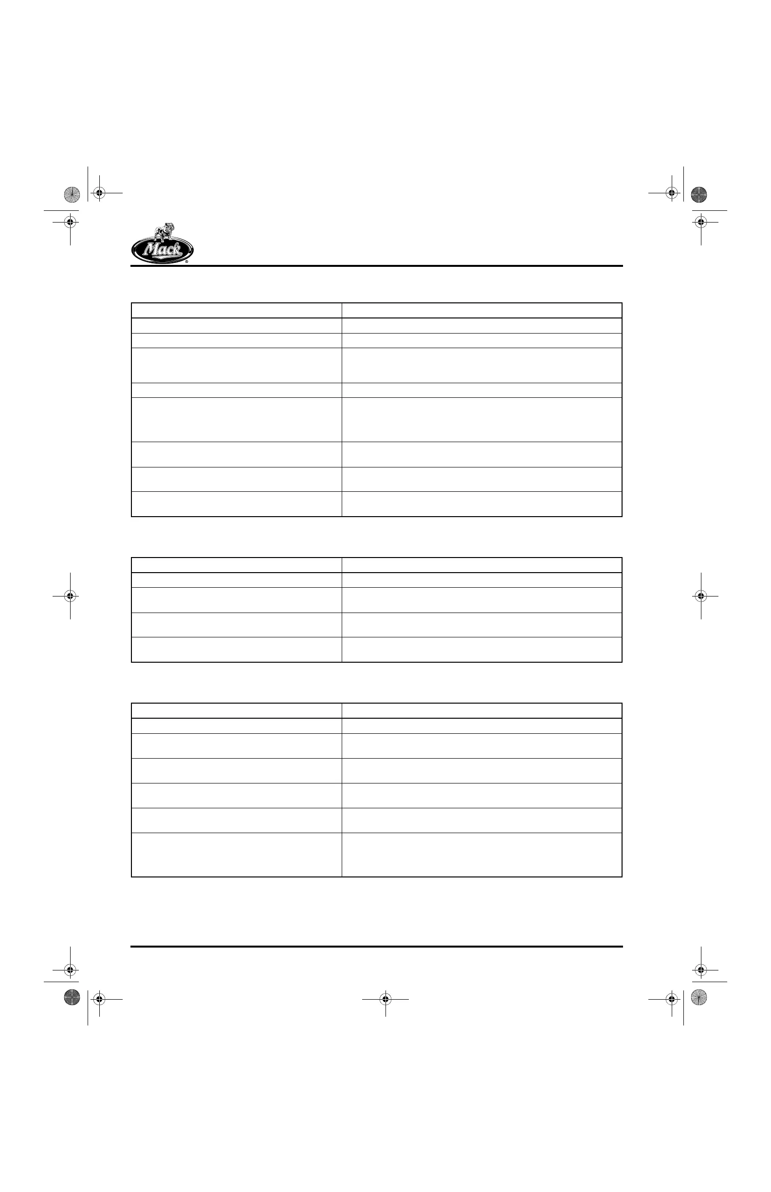 Locate the source of the leak and correct. Fill with MACK-specified