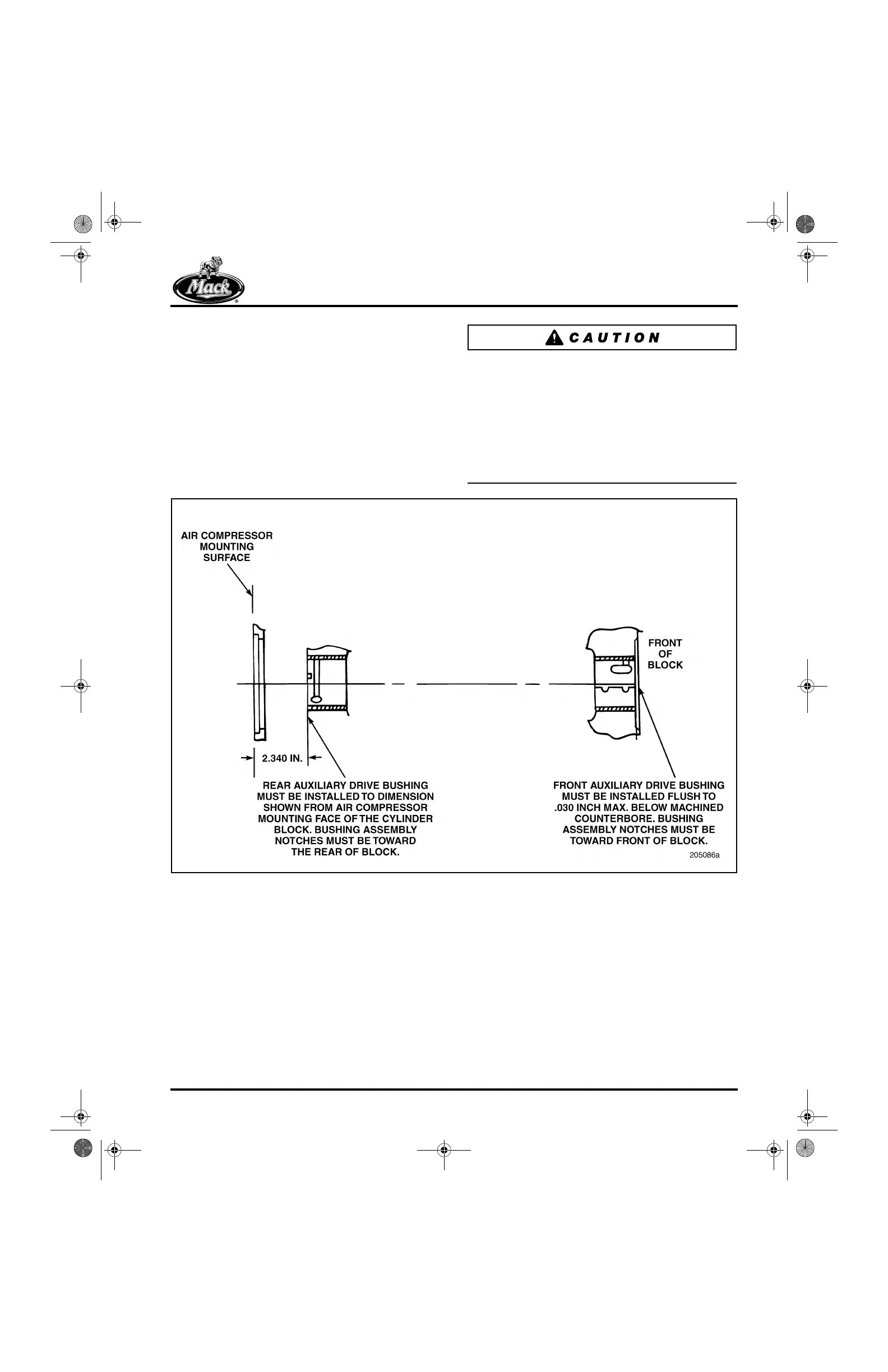 The front auxiliary shaft bushing must be flush or