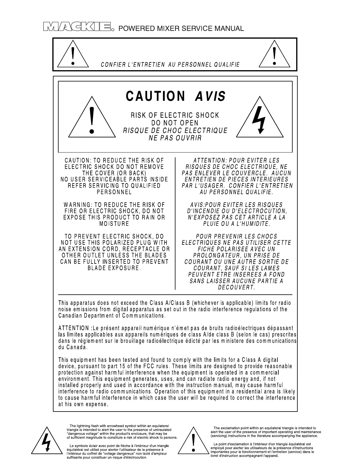 SERVICE ON THIS EQUIPMENT IS TO BE PERFORMED BY